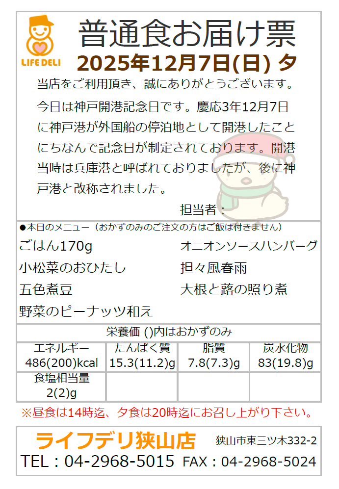 ライフデリ狭山店では、ご試食・ご注文は配達日の前日18時まで承っております。