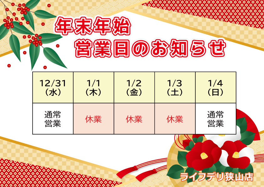 年末年始休業のお知らせ