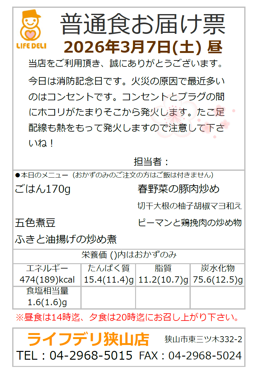 ライフデリ狭山店では、ご試食・ご注文は配達日の前日18時まで承っております。